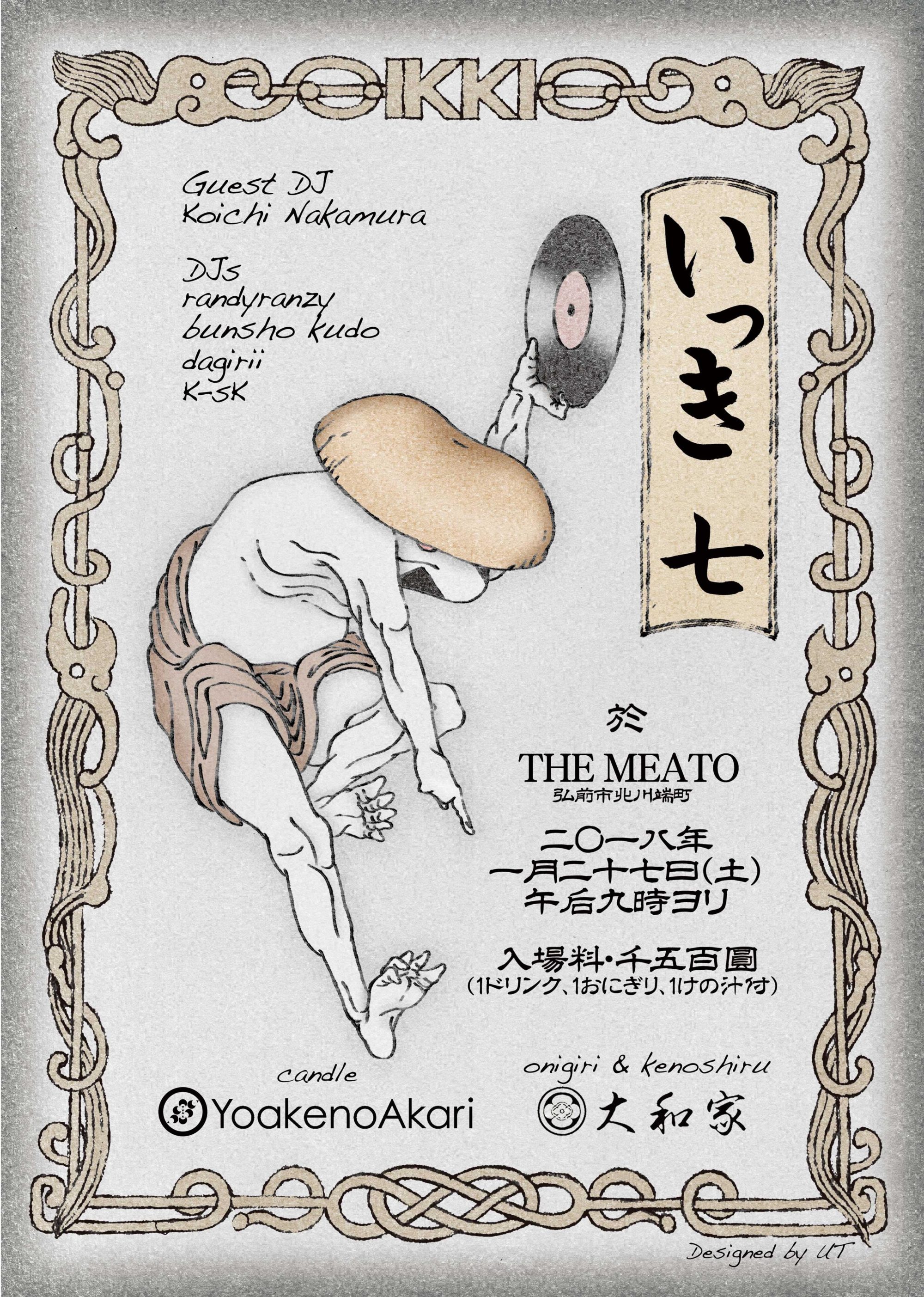今回は山形に嫁いだdagiriiが久々かつ一瞬の帰郷により、およそ1年ぶりに弘前でプレイ。一方でUTとkanekkuが欠席。UTはイベント不在ながら今回もフライヤーをデザイン。kanekkuは、実際いろいろ大変だと思うし、実際男ができることなんてほぼないわけだしアレだけど、なんかしら役には立つのでまあ頑張ってくれ!(完全に私信)