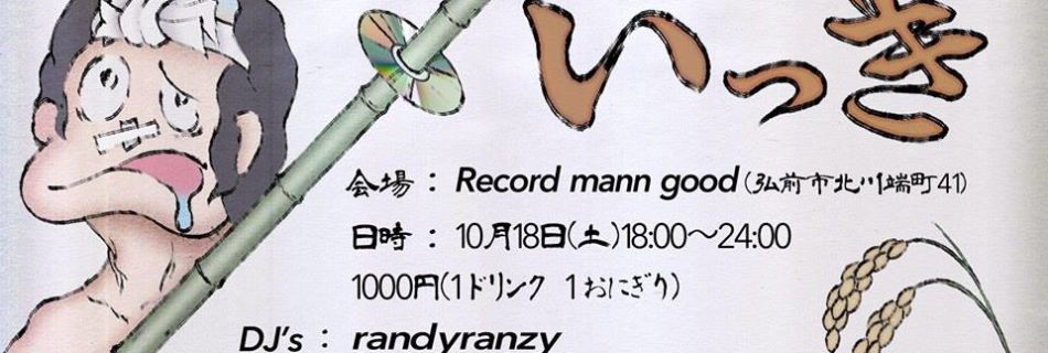 2014.10.18(SAT) 18:00~24:00 @Record mann good(青森県弘前市北川端町) door /1000yen(1ドリンク&1おにぎり) 【DJ】 randyranzy,bunsho ku …